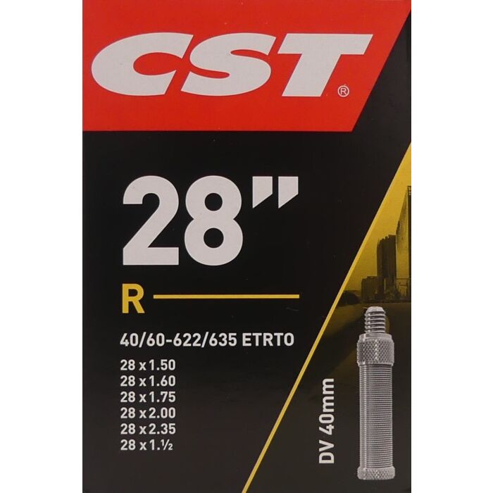 De CST DV40 binnenband heeft een standaard afmeting van 28/29 inch met een bandenmaat van 1.50-2.35 inch, en de ETRTO maten variëren van 40 tot 60-622, waardoor deze geschikt is voor een breed scala aan banden. Gemaakt van duurzaam rubber, biedt deze binnenband de stevigheid en flexibiliteit die nodig zijn voor een lange levensduur.