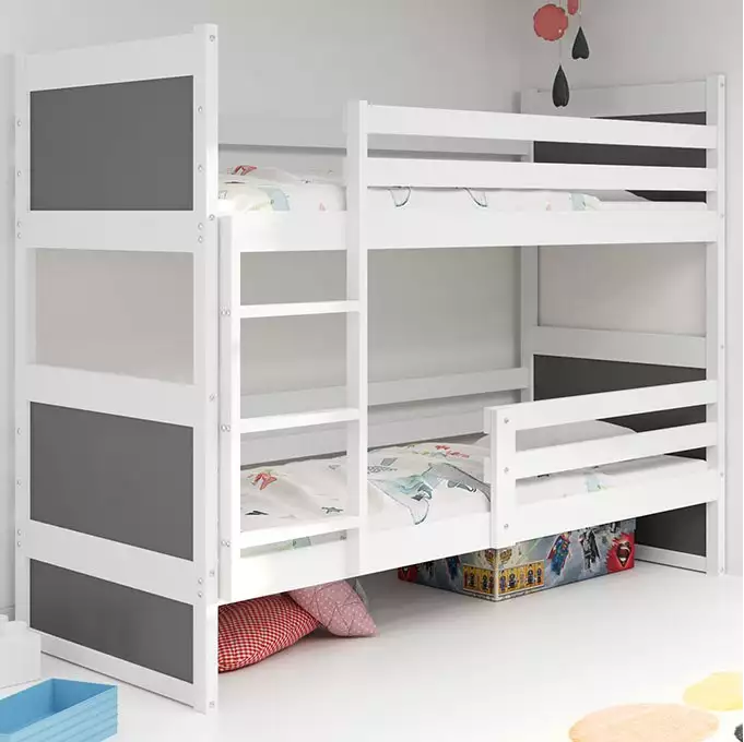 De RICO Bunk Bed is ontworpen voor eenvoudige montage met snel te bevestigen accessoires. Het unieke frame met veerslatten zorgt voor een stevige ondersteuning en verlengt de levensduur van het bed. Het innovatieve klik-klaksysteem maakt assemblage snel en ongecompliceerd. Dit bed is ook gecertificeerd volgens de hoogste TUV-normen voor kwaliteit en veiligheid.