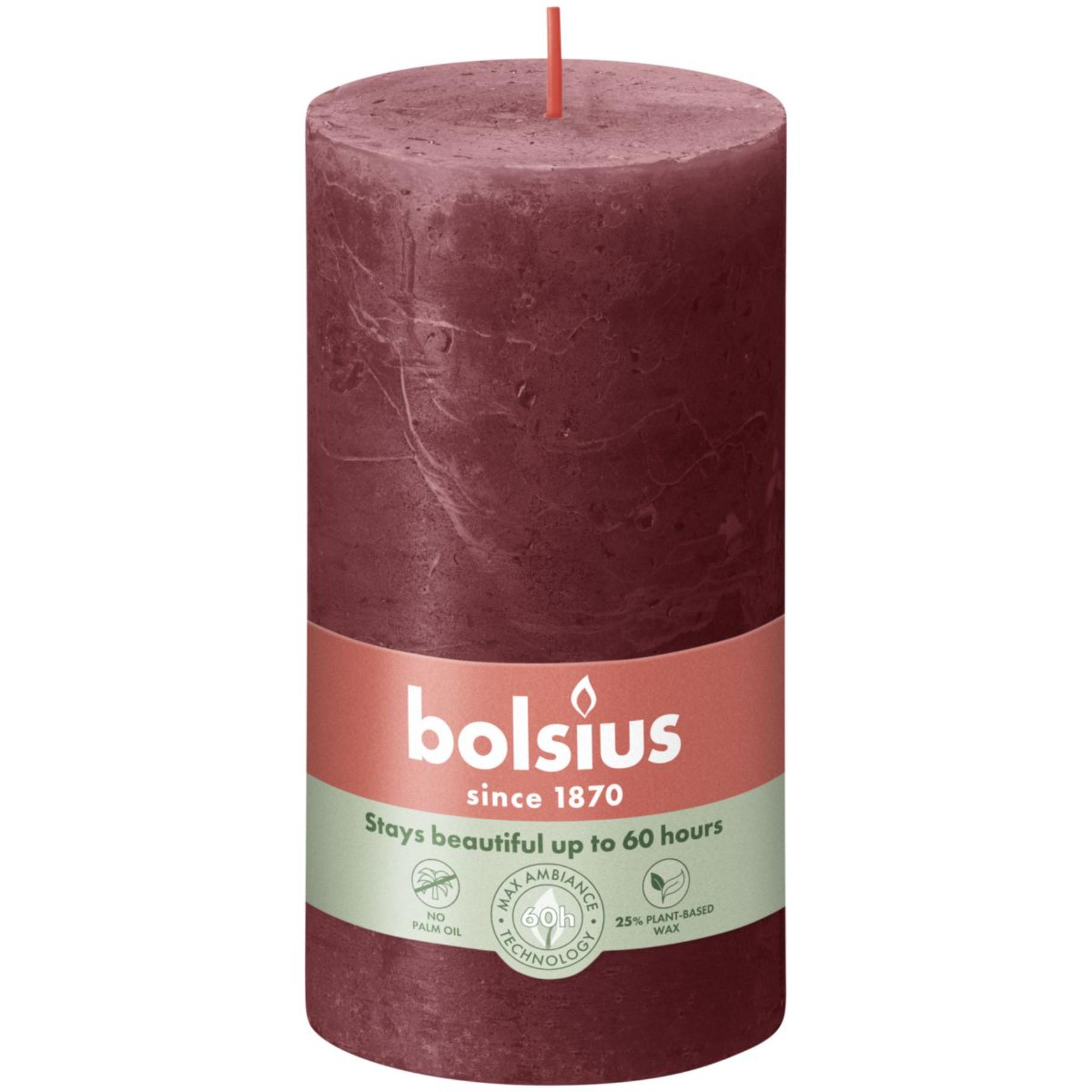 - Rustieke donkerrode stompkaars van Bolsius
