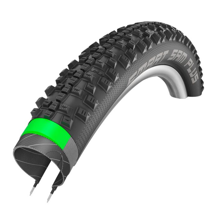 De Schwalbe Smart Sam Plus DD is uitgerust met een wired type, wat bijdraagt aan de stabiliteit en het gebruiksgemak. Het ontwerp is voorzien van SnakeSkin zijwanden die extra bescherming bieden tegen stoten en scheuren, zonder in te boeten op flexibiliteit. Dit maakt de band uiterst geschikt voor ruige omstandigheden en uitdagend terrein.