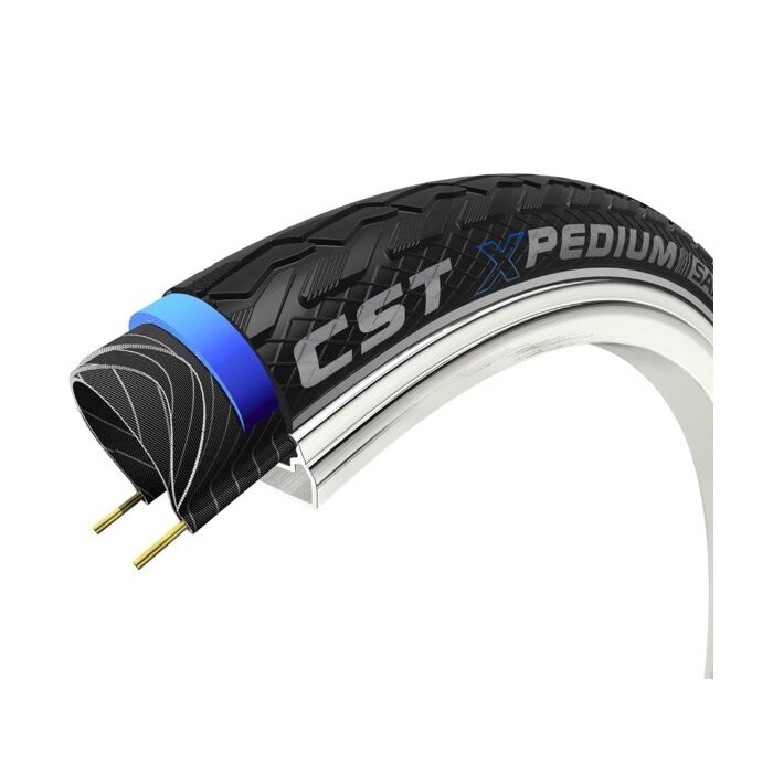 De CST Xpedium Safe buitenband is ontworpen om u een optimale rijervaring te bieden zonder de zorgen van lek rijden. Deze band is ideaal voor zowel woon-werkverkeer als dagelijks gebruik, zoals voor postbezorgers en schoolgaande kinderen die van het ene dorp naar het andere reizen. Met een speciaal verstevigd karkas zorgt de Xpedium Safe voor een uitstekende balans en stabiliteit, waardoor u met vertrouwen kunt rijden, wetende dat u veilig thuis kunt komen zonder onderbrekingen door lekke banden.