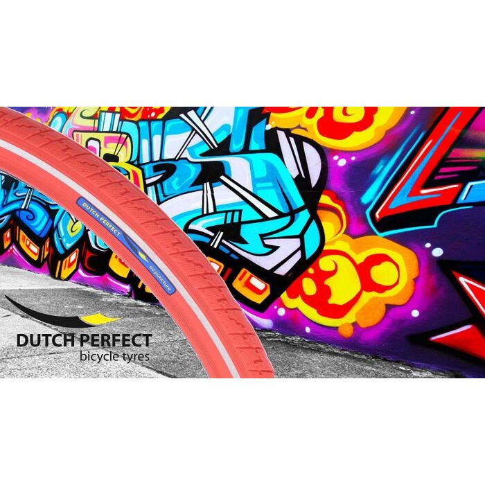 De Dutch Perfect buitenband is speciaal ontworpen voor fietsen die vaak in stedelijke omgevingen worden gebruikt, maar ook voor trekkingdoeleinden. Met zijn maat van 28 x 1 ½" (40-635) biedt deze band een uitstekende grip en stabiliteit tijdens het rijden. De opvallende rode kleur, gecombineerd met reflecterende details, zorgt niet alleen voor stijl maar ook voor zichtbaarheid in de nachtelijke uren.