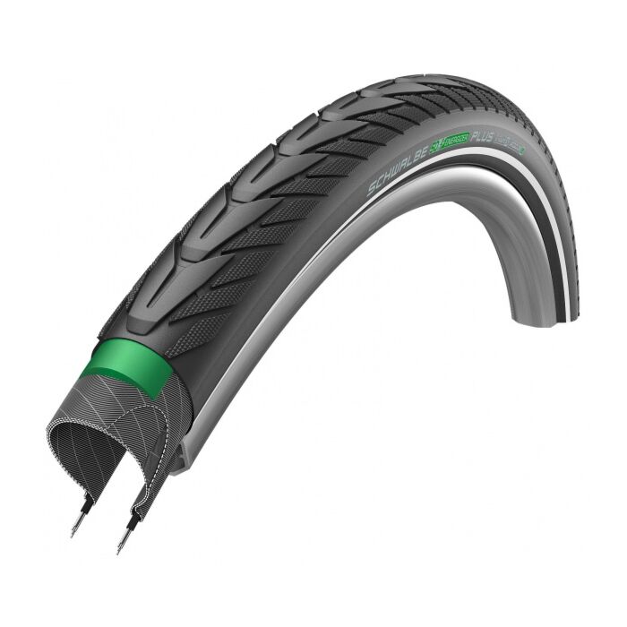 Speciaal ontworpen voor E-bikes, de Schwalbe Energizer Plus GreenGuard buitenband is voorzien van een ultramodern, dynamisch tourprofiel met een glad middenstuk en sterk gediamanteerde zijvlakken. Dit zorgt voor een lichte rol op straat en biedt goede grip, zelfs op ongeplaveide wegen. De toevoeging van het speciale Addix E-compound, specifiek ontworpen voor E-bikes, zorgt voor maximale duurzaamheid, een lage rolweerstand en een uitstekende grip, zelfs bij hoge snelheden. De beproefde GreenGuard anti-leklaag van 3 mm dik garandeert betrouwbare lekbescherming voor dagelijks gebruik. Deze band is ECE-R75 gecertificeerd, wat de kwaliteit en veiligheid bevestigt.