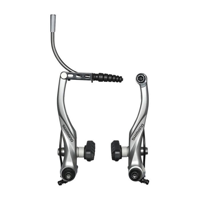 De Shimano Alivio T4000 achter V-brake is een hoogwaardige remoplossing die speciaal is ontworpen voor trekkingfietsen. Met deze remmen profiteer je van een uitstekende remkracht en precisie, wat essentieel is voor het veilig afremmen op verschillende terreinen. De robuuste constructie in combinatie met het strakke zilveren ontwerp maakt het een perfecte aanvulling voor elke fiets.