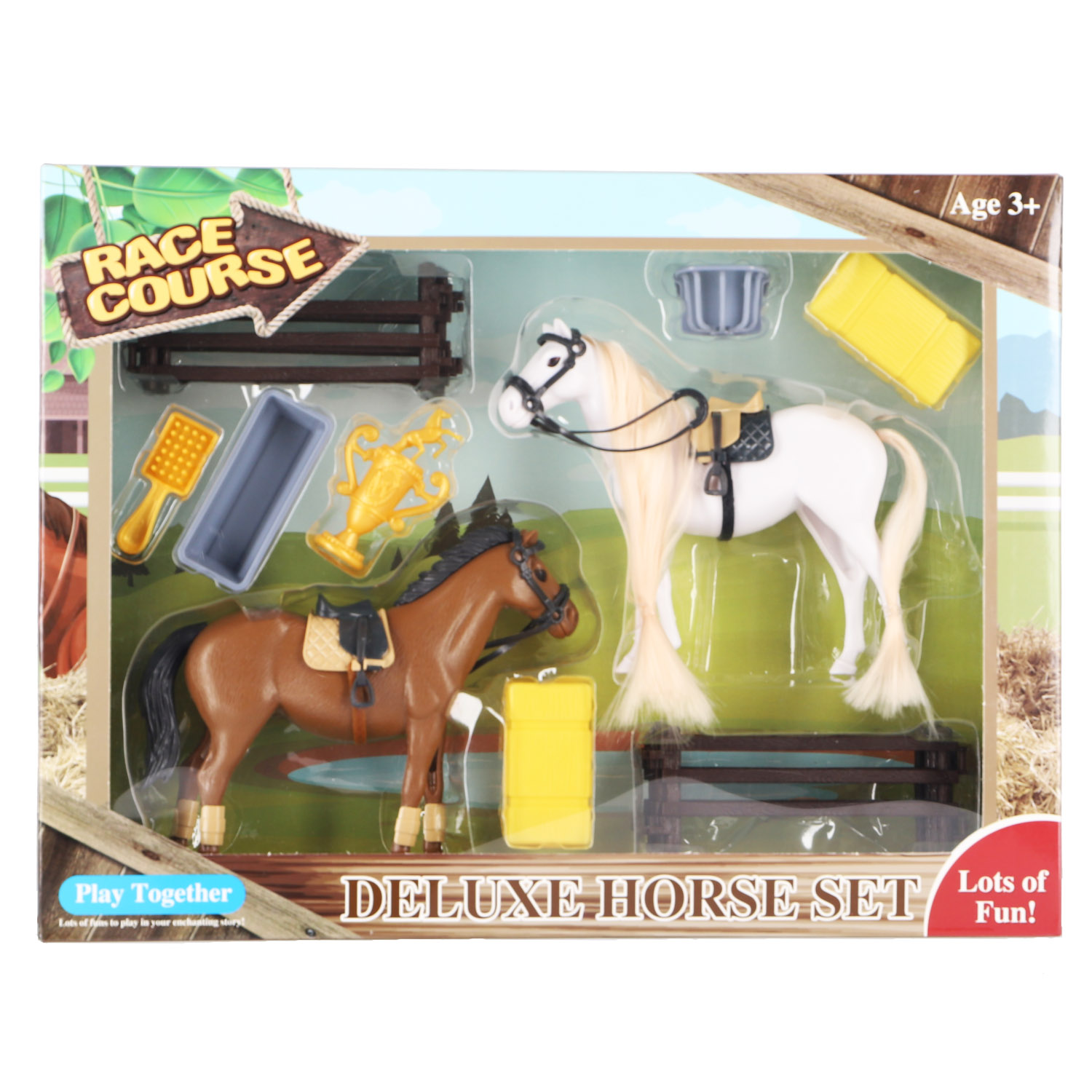 De Paarden Speelset Met Accessoires is een uitgebreide set voor kinderen die van paarden houden. Deze set bevat diverse accessoires en elementen voor een fantasierijke speelervaring.