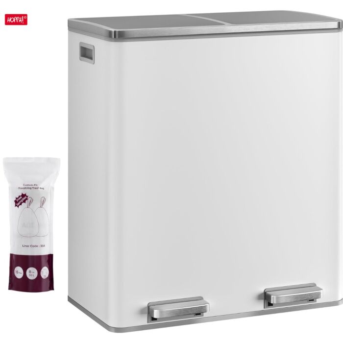 Hoppa! | Vuilnisbak met 2 vakken | 2 x 30 L | Wit-Zilver