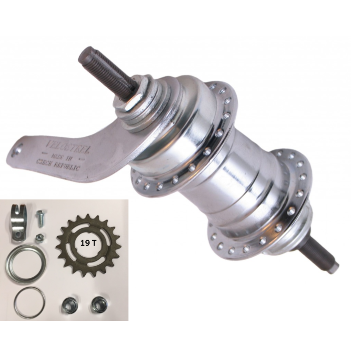 De Velosteel Favorit remnaaf is geschikt voor verschillende soorten fietsen en kan eenvoudig worden geïnstalleerd. De set bevat alle benodigde onderdelen, waaronder een tandwiel, een lockring, en flensmoeren, waardoor het een complete oplossing biedt voor uw fietsbehoeften.