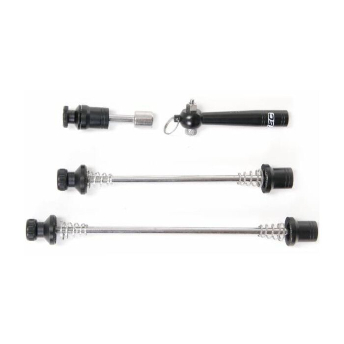- Complete quick release set voor voorwiel, achterwiel en zadelpen