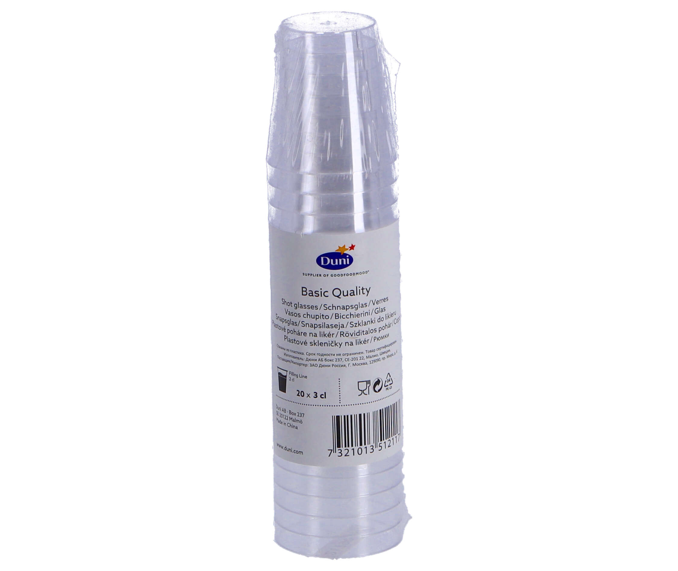 De plastic shotglaasjes zijn perfect voor feestjes en evenementen waar drankjes in kleine porties geserveerd moeten worden. Deze verpakking bevat 20 stuks stevige plastic shotglaasjes die gemakkelijk te gebruiken en weg te gooien zijn na gebruik.