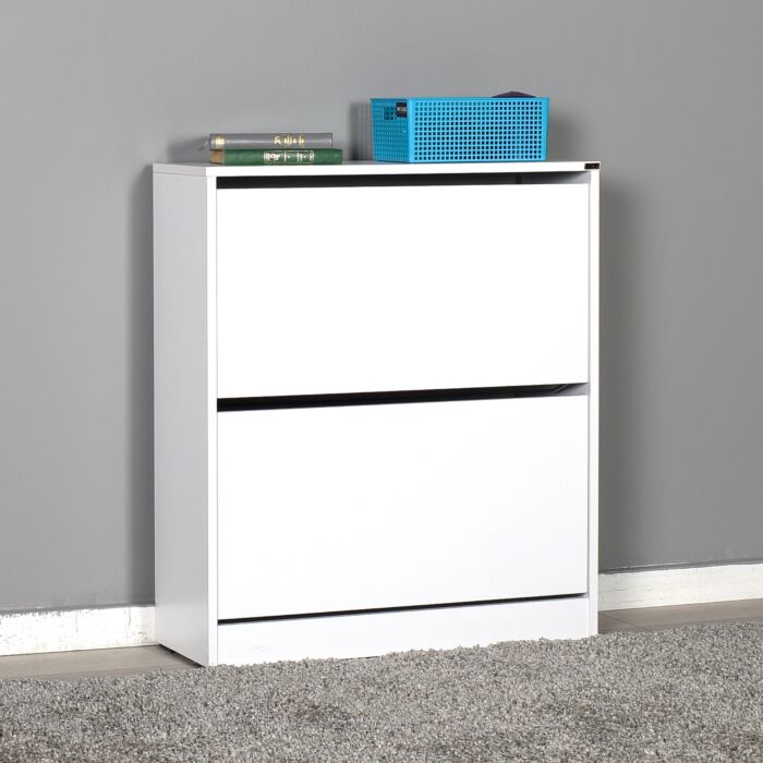 Met twee ruime lades en meerdere legplanken biedt de schoenenkast voldoende opbergruimte voor al je schoeisel. Nooit meer zoeken naar bijpassende paren of eindeloos graven door stapels schoenen. Houd je collectie netjes georganiseerd en altijd binnen handbereik.