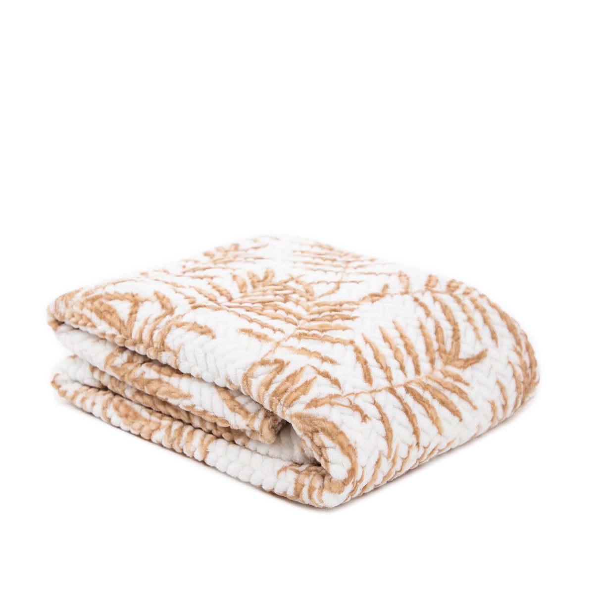 Zachte BLOS-deken is niet alleen een stijlvolle aanvulling op je interieur, maar ook je favoriete metgezel tijdens koude dagen en ijzige avonden. Op een witte achtergrond prijkt een beige palmbladerenpatroon en het oppervlak van de deken heeft een vlechtweefstructuur. Deze deken past perfect in lichte, minimalistische interieurs en vormt ook een mooie toevoeging in boho- en scandi-stijlen.