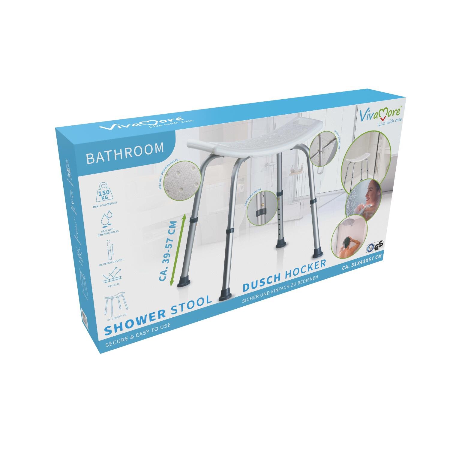 De Vivamore Douchekruk is ontworpen om douchen veiliger en comfortabeler te maken, vooral voor ouderen en mensen met beperkte mobiliteit. De stevige, comfortabele zitting biedt een stabiele zitplaats tijdens het douchen. Dankzij de in hoogte verstelbare poten past de kruk zich eenvoudig aan elke gebruiker aan. De montage is snel en gereedschapsloos, en de kruk is geschikt voor alle douchetypes.