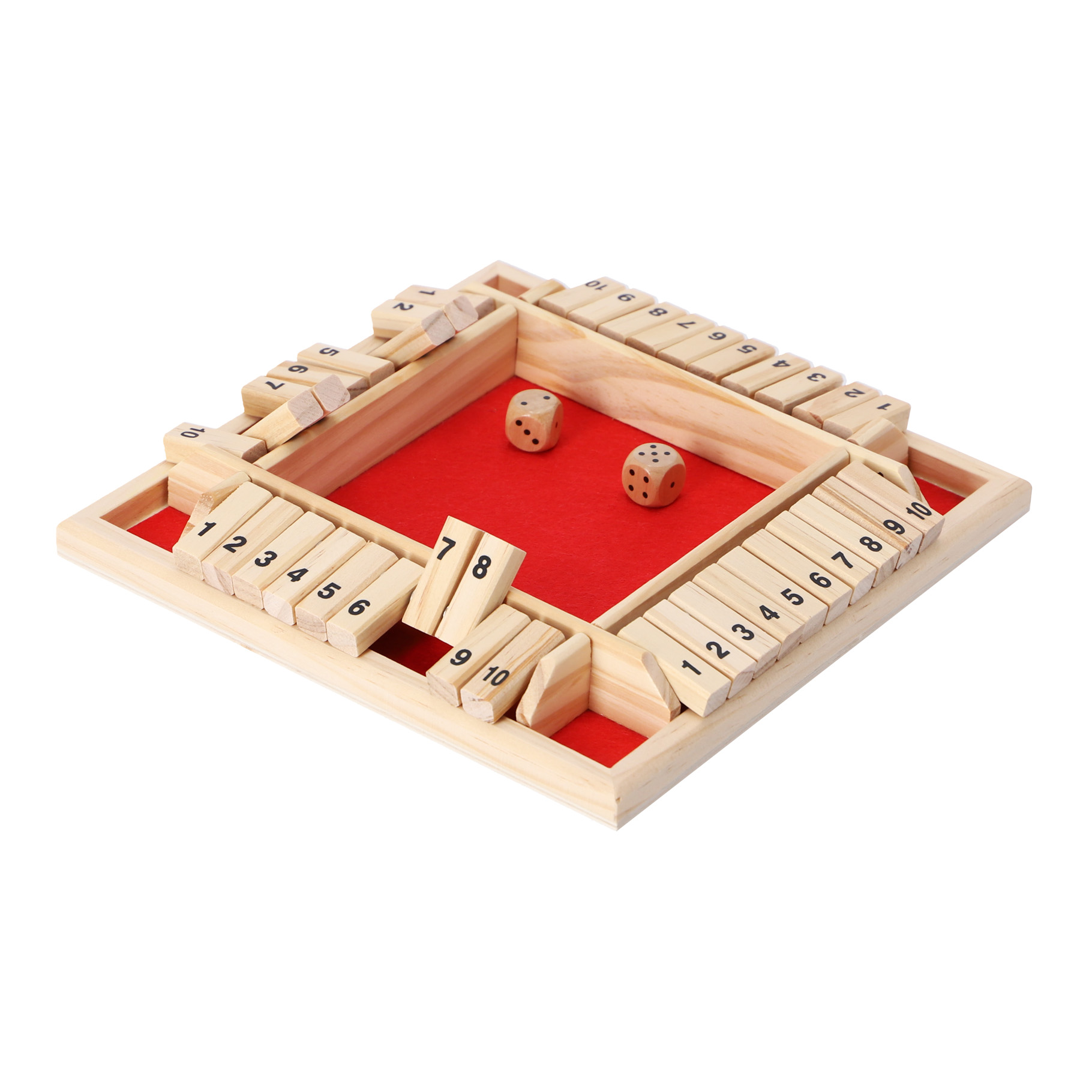 Het spel Shut The Box is ontworpen voor 4 spelers en staat garant voor uren plezier. Het doel van het spel is om alle cijfers neer te klappen door slim te spelen en te anticiperen op de worpen van je tegenstanders. Met een duidelijk spelbord en eenvoudige regels is Shut The Box geschikt voor alle leeftijden.