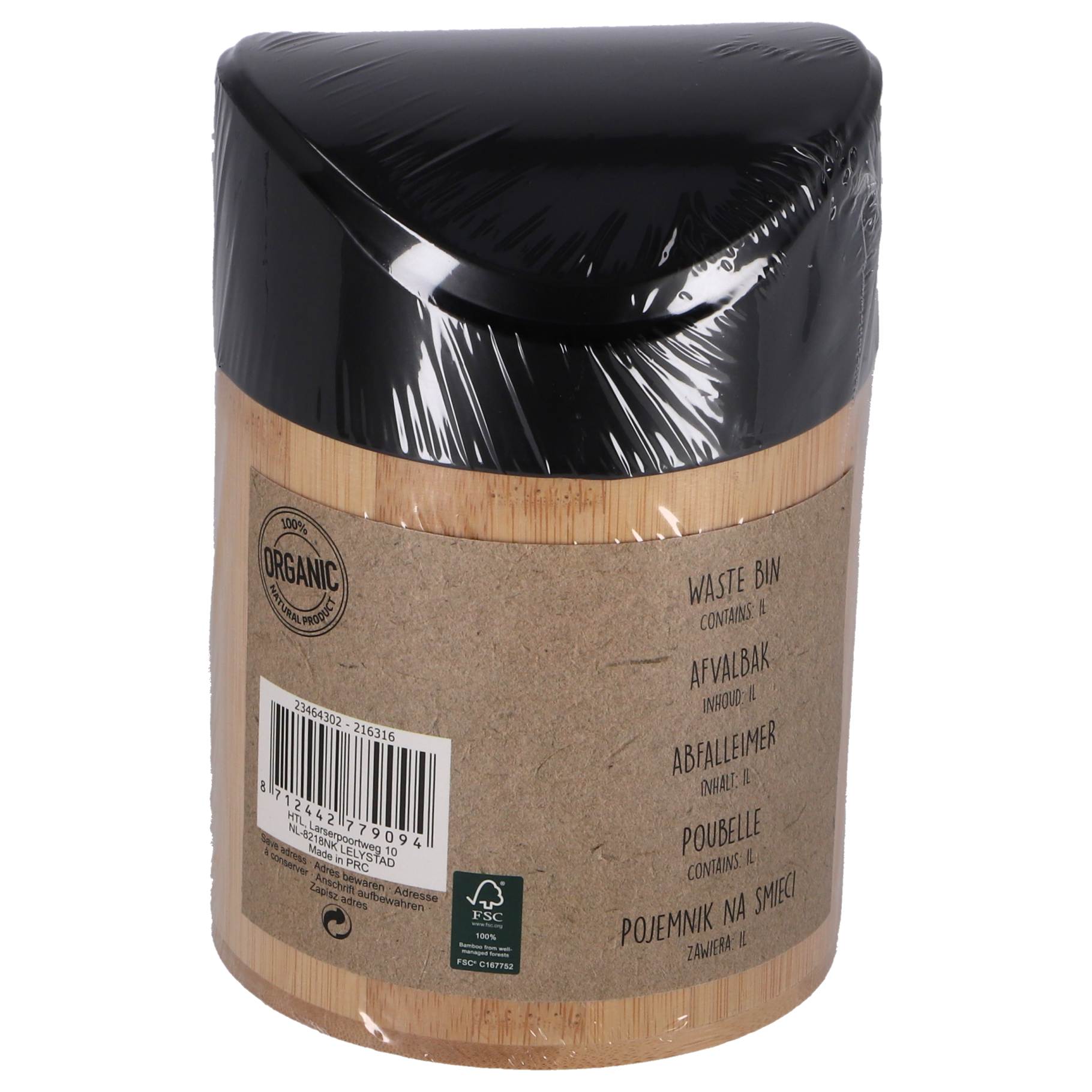 De afvalbak heeft compacte afmetingen die perfect passen op tafelbladen of bureaus. Gemaakt van hoogwaardig bamboehout, bekend om zijn sterkte en duurzaamheid.