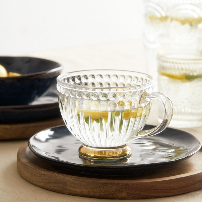De HOMLA theekop valt op door zijn transparante vintage-ontwerp, dat elegance en tijdloosheid uitstraalt. Deze veelzijdige kop is niet alleen functioneel, maar ook een prachtig decoratief element op elke tafel. Of je nu een formeel banket of een informele theepauze organiseert, deze theekop is de ideale keuze.