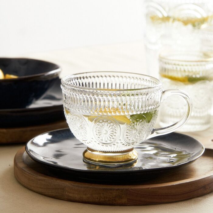 De ton-theekop heeft een inhoud van 0,36 liter, wat het perfect maakt voor het serveren van een genereuze portie thee of andere dranken. Het materiaal is zorgvuldig geselecteerd om duurzaamheid te garanderen, terwijl het tegelijkertijd een elegant visueel effect biedt met zijn transparante uitstraling.