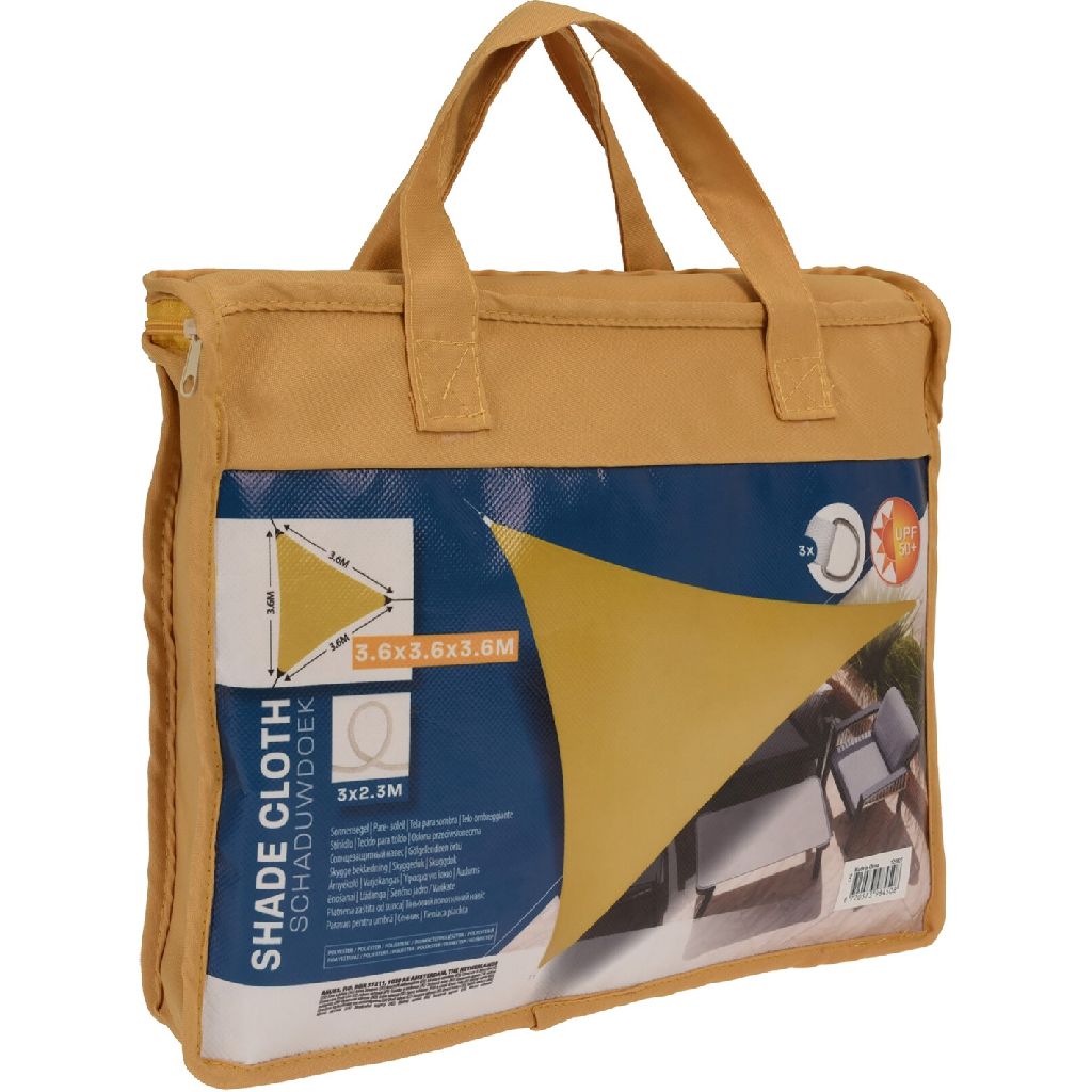 Voorzien van stevige zeilringen op de drie hoeken en inclusief drie sterke nylon koorden, bevestig je het doek snel en eenvoudig. De okergele kleur geeft je buitenruimte bovendien een frisse, stijlvolle uitstraling.