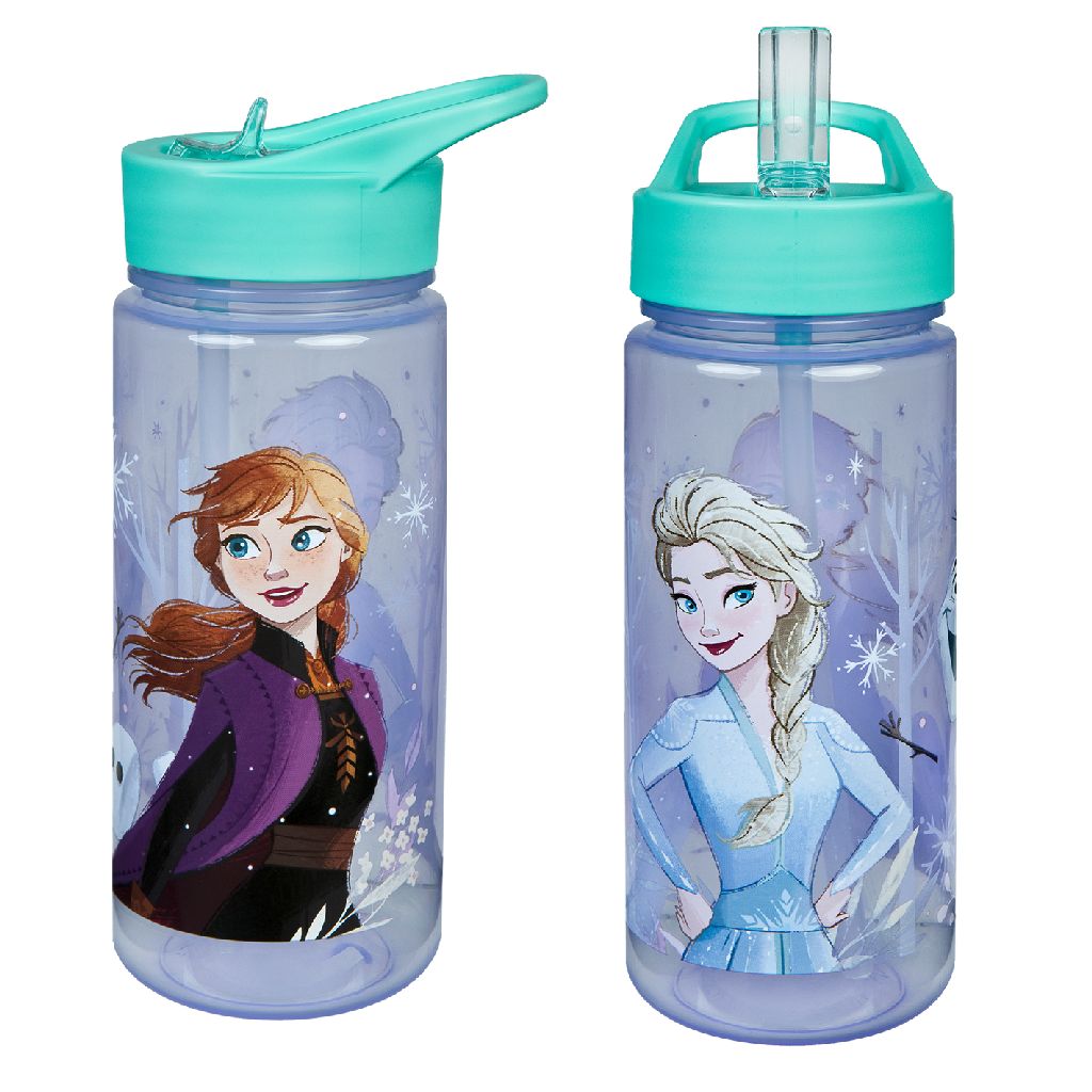 Maak drinken leuk met deze herbruikbare paars met blauwe Frozen drinkfles van Scooli! De fles past perfect in een rugzak en is ideaal voor sporten, school of onderweg. De fles heeft een inhoud van 500 ml en heeft een leuke afbeelding van Elsa en Anna uit de film Frozen. Voorzien van een rietje om zonder morsen te kunnen drinken. Wanneer het rietje afgesloten is, is de fles lekvrij. De brede opening maakt de fles makkelijk te vullen en schoon te maken. Met zijn comfortabele handgreep is de fles ook nog eens makkelijk in gebruik. Hoogte: 19 cm, diameter: 9 cm. Wordt geleverd in polybag.