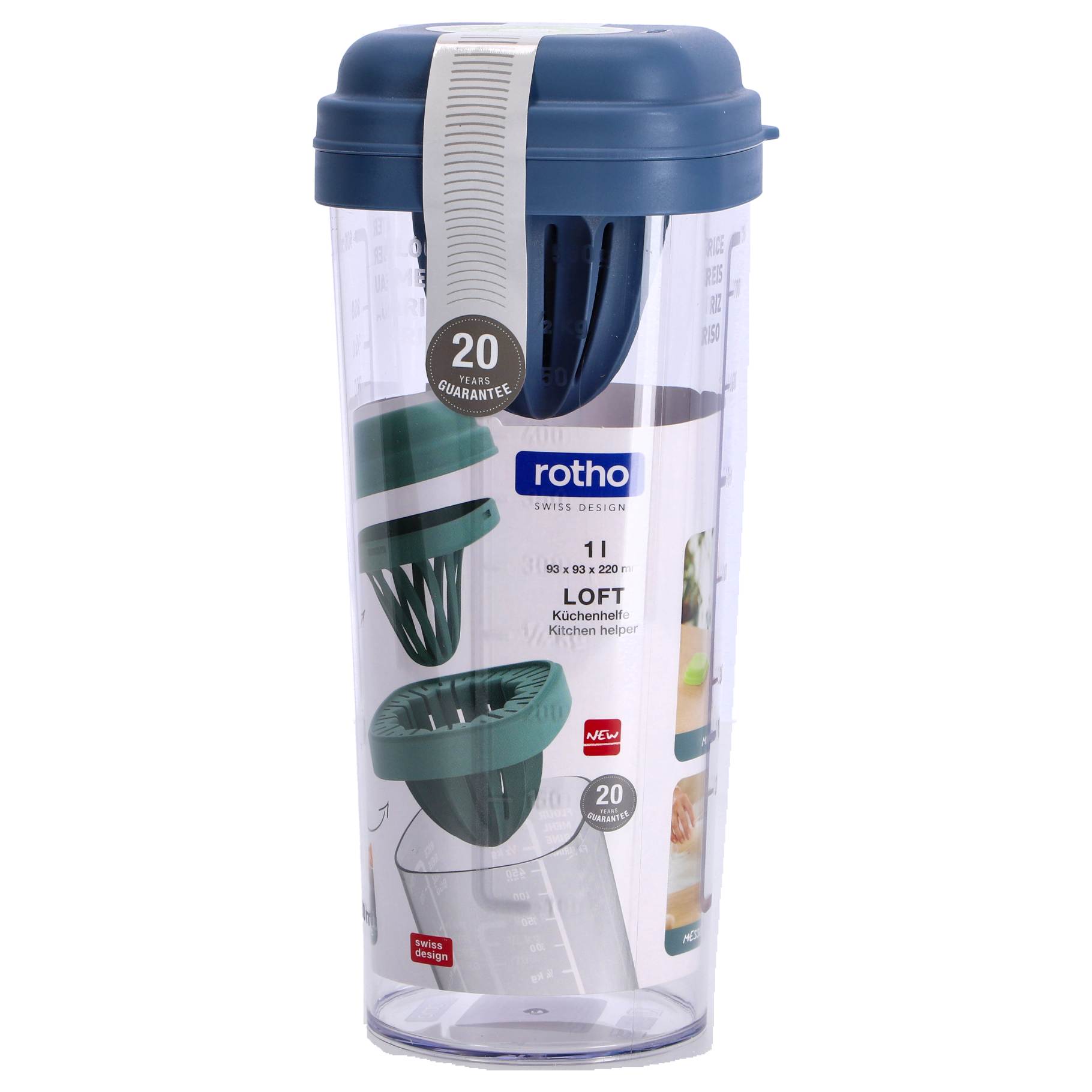 De LOFT Shaker met pers 1 L in de kleur Horizon Blauw is een handig en stijlvol keukengerei dat perfect is voor het persen van sappen en het mixen van drankjes.