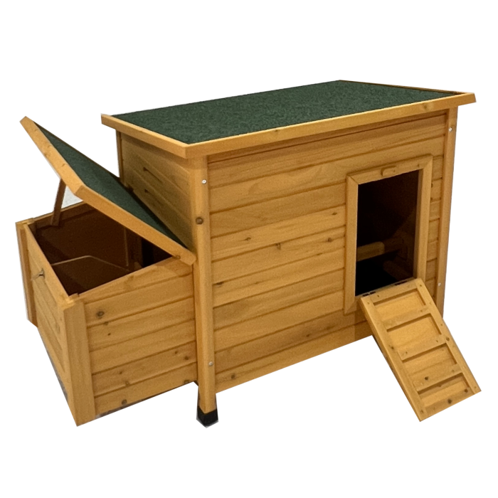 Het Kippenhok Natura is uitgerust met een bitumen dak dat eenvoudig te openen en sluiten is dankzij de scharnieren. Dit maakt het mogelijk om het hok snel te inspecteren en schoon te maken. Aan beide zijden van het hok zijn er ventilatieramen geplaatst, die zorgen voor voldoende luchtcirculatie zonder dat het tocht in het hok veroorzaakt.