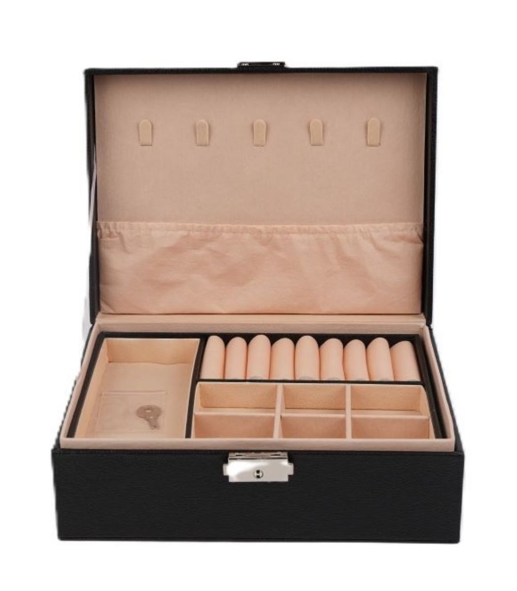 Ceruzo | Sieradendoos | 2 lagen | zwart kunstleer | met slot