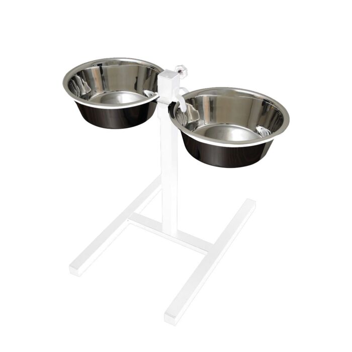 H-standaard wit van Quapas! is een praktische en stijlvolle oplossing voor het voeden van middelgrote en grote honden. Deze standaard is ontworpen met RVS bakken die de spijsvertering van uw huisdier bevorderen, wat door dierenartsen wordt aanbevolen. Met een hoogte van 60 cm is deze standaard ideaal voor het gemak en comfort van uw huisdier tijdens het eten.