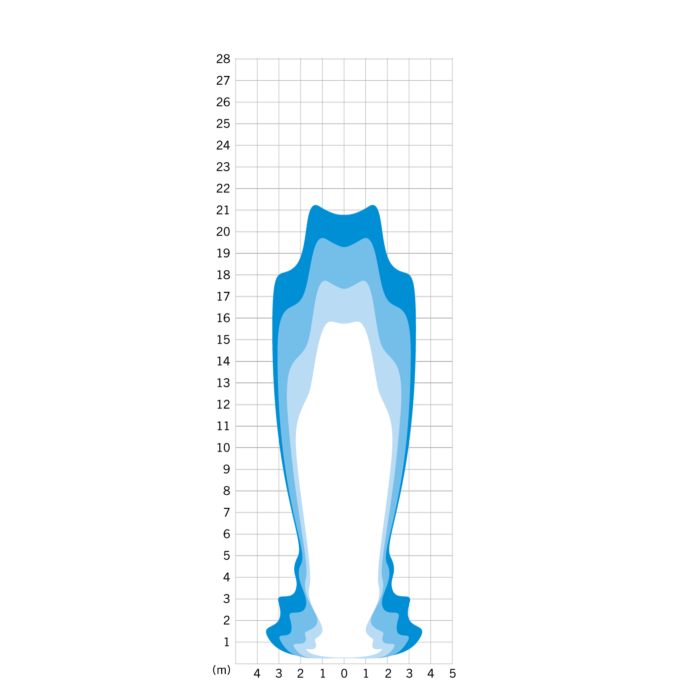 - Lang en gelijkmatig lichtpatroon met uitstekende verlichting
