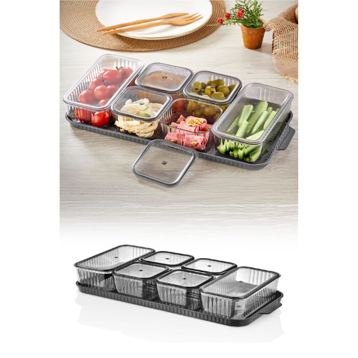 Met een afmeting van 19 x 37 x 6 cm is onze opbergboxenset ontworpen voor al je opslagbehoeften. De 6 kommen, elk 15 cm groot en met een inhoud van 300 cc, zijn perfect voor het bewaren van restjes, kant-en-klaarmaaltijden of zelfs snacks. De 6 deksels van 8.5 cm zorgen voor een goede afsluiting zodat je eten langer vers blijft. De set bevat ook een dienblad, wat een extra niveau van organisatie toevoegt aan je ruimte.