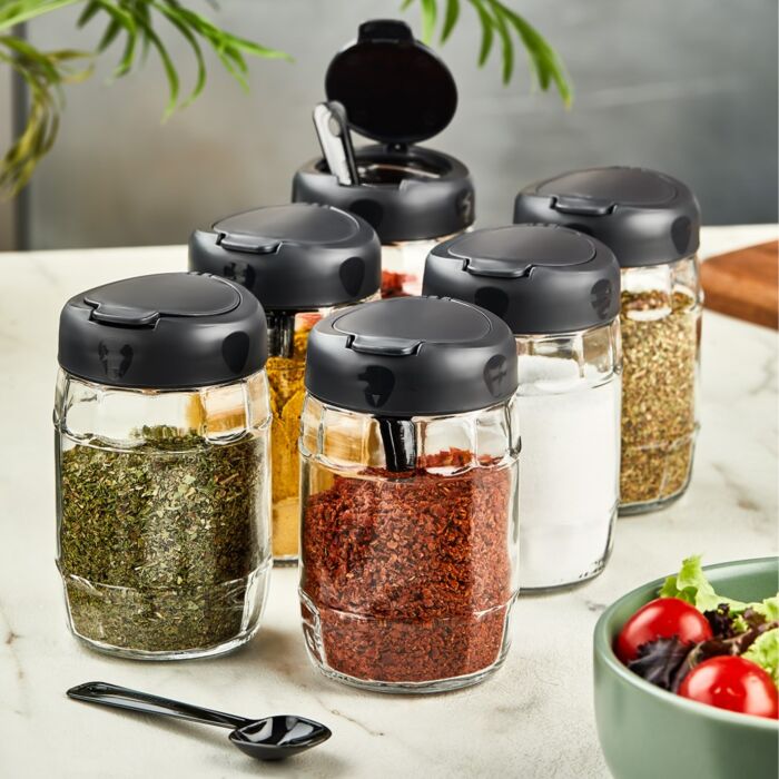 Onze kruidenpotjes zijn ideaal voor zowel de beginnende kok als de ervaren chef. Houd al je favoriete specerijen georganiseerd en binnen handbereik, zodat je in een handomdraai smaak toevoegt aan je gerechten. De set van zes biedt voldoende ruimte voor al je kookbehoeften.