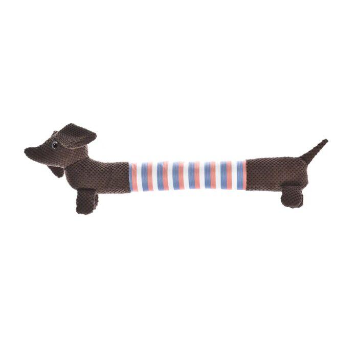 Onze hondenknuffel heeft een indrukwekkende afmeting van 78x15 cm, wat het groot genoeg maakt voor de grootste honden. Het is vervaardigd uit hoogwaardige, hondvriendelijke materialen die ervoor zorgen dat de knuffel zacht aanvoelt op de huid van je hond, zonder scherpe randen.
