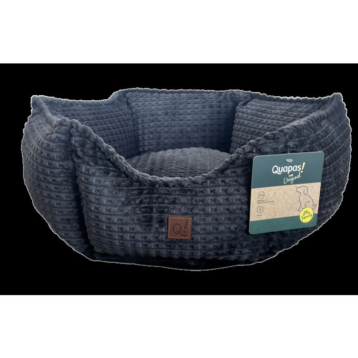 De Quapas! Comfort Cozy Grey hondenmand biedt jouw hond een warme en comfortabele rustplek in een stijlvolle uitvoering. Deze mand, ontworpen met het oog op zowel comfort als duurzaamheid, is bekleed met een zachte, geribbelde stof die niet alleen heerlijk aanvoelt, maar ook lang meegaat. Het moderne, donkere kleurenschema van de Comfort Cozy past perfect in elk interieur en voegt een vleugje luxe toe aan je huis.