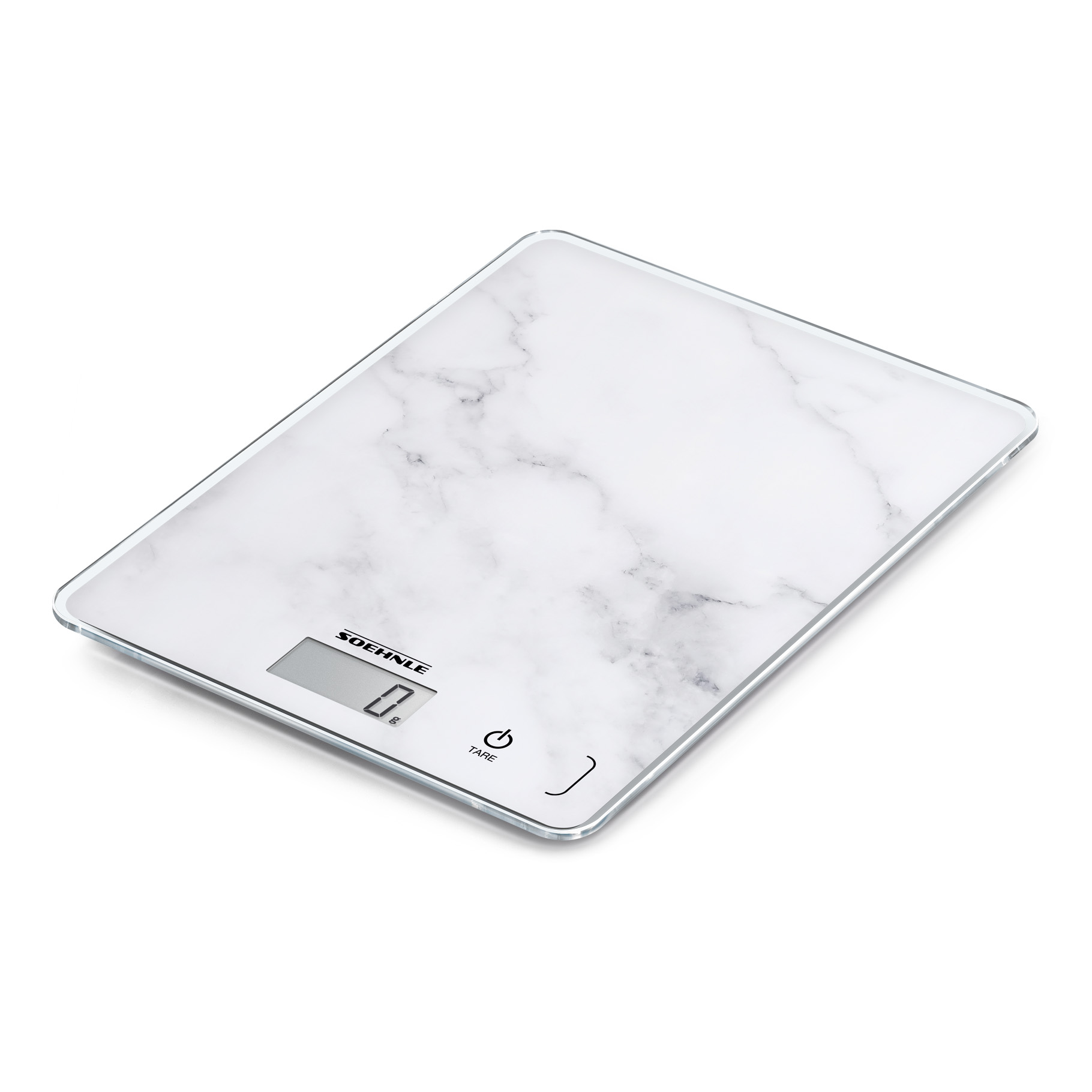 De keukenweegschaal heeft een compact formaat, ideaal voor gebruik in kleine keukens. De marmeren afwerking zorgt voor een stevige basis en geeft een luxe uitstraling. Door zijn lichte gewicht is de weegschaal eenvoudig op te bergen of mee te nemen.
