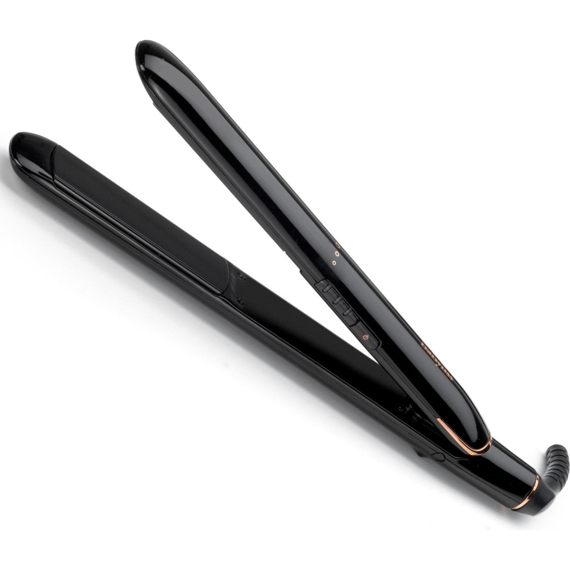 De stijltang heeft een slank en lichtgewicht ontwerp, waardoor hij gemakkelijk te hanteren is. De platen zijn gemaakt van hoogwaardig keramisch materiaal, wat niet alleen zorgt voor een uitstekend stylingresultaat, maar ook de haarstructuur beschermt.