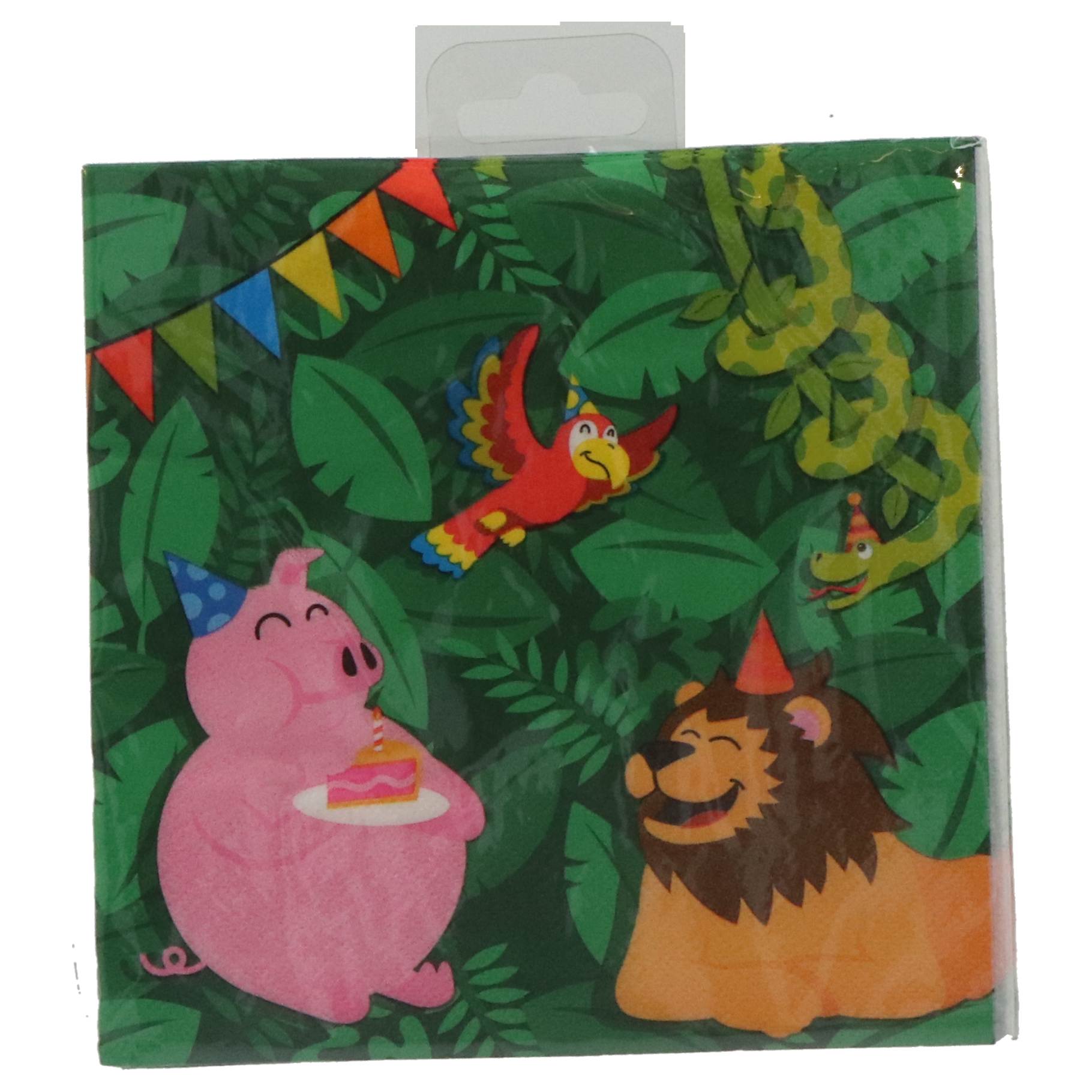 De Jungle Thema Servetten zijn een ideale aanvulling voor elk feest waar een speelse en natuurlijke sfeer gewenst is. Met een levendig ontwerp dat de kleuren en elementen van een jungle weerspiegelt, zijn deze servetten perfect voor dieren- en natuurthema's. Ze zorgen niet alleen voor een vrolijke presentatie maar zijn ook functioneel, ontworpen om de recyclebaarheid en gebruiksvriendelijkheid te waarborgen.