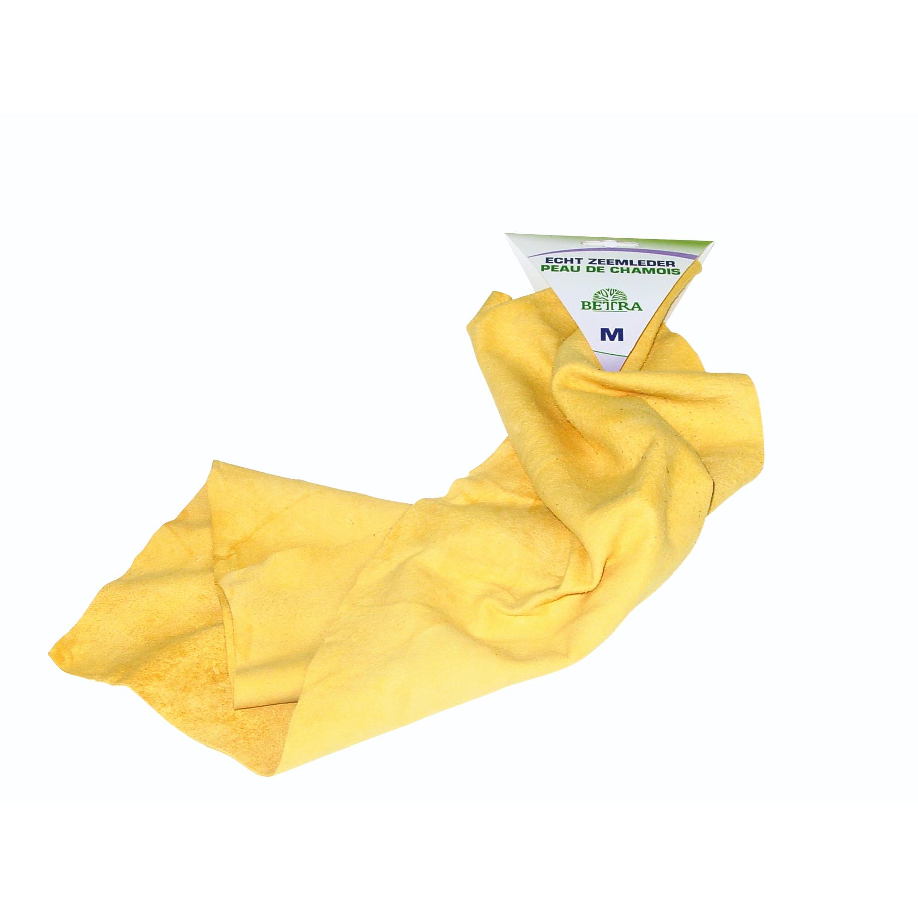Dit zeemleder is verkrijgbaar in maat M, wat het ideaal maakt voor een breed scala aan toepassingen. Het materiaal, zeemleder, staat bekend om zijn zachtheid en soepelheid, waardoor het perfect is voor het reinigen en polijsten van delicate oppervlakken zonder krassen achter te laten.