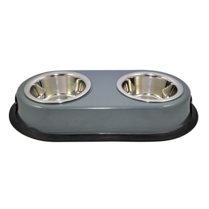 Grijze Antislip Dubbele Voerbak | 1.900ML | Dierenspeciaalzaken