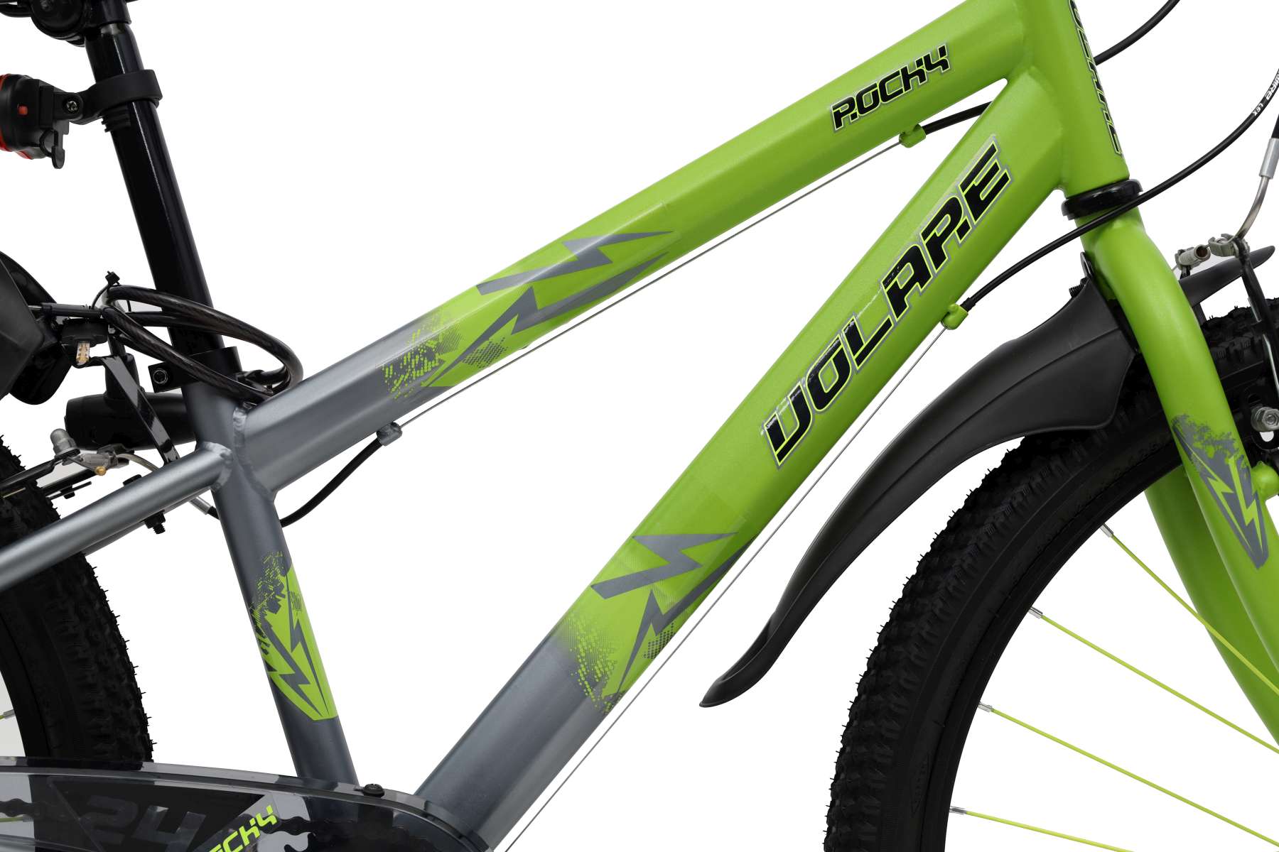 De Rocky kinderfiets heeft een wielmaat van 24 inch, wat perfect is voor de leeftijdsgroep van 8 tot 12 jaar. Het frame is gemaakt van hoogwaardig staal dat zorgt voor stevigheid en duurzaamheid.