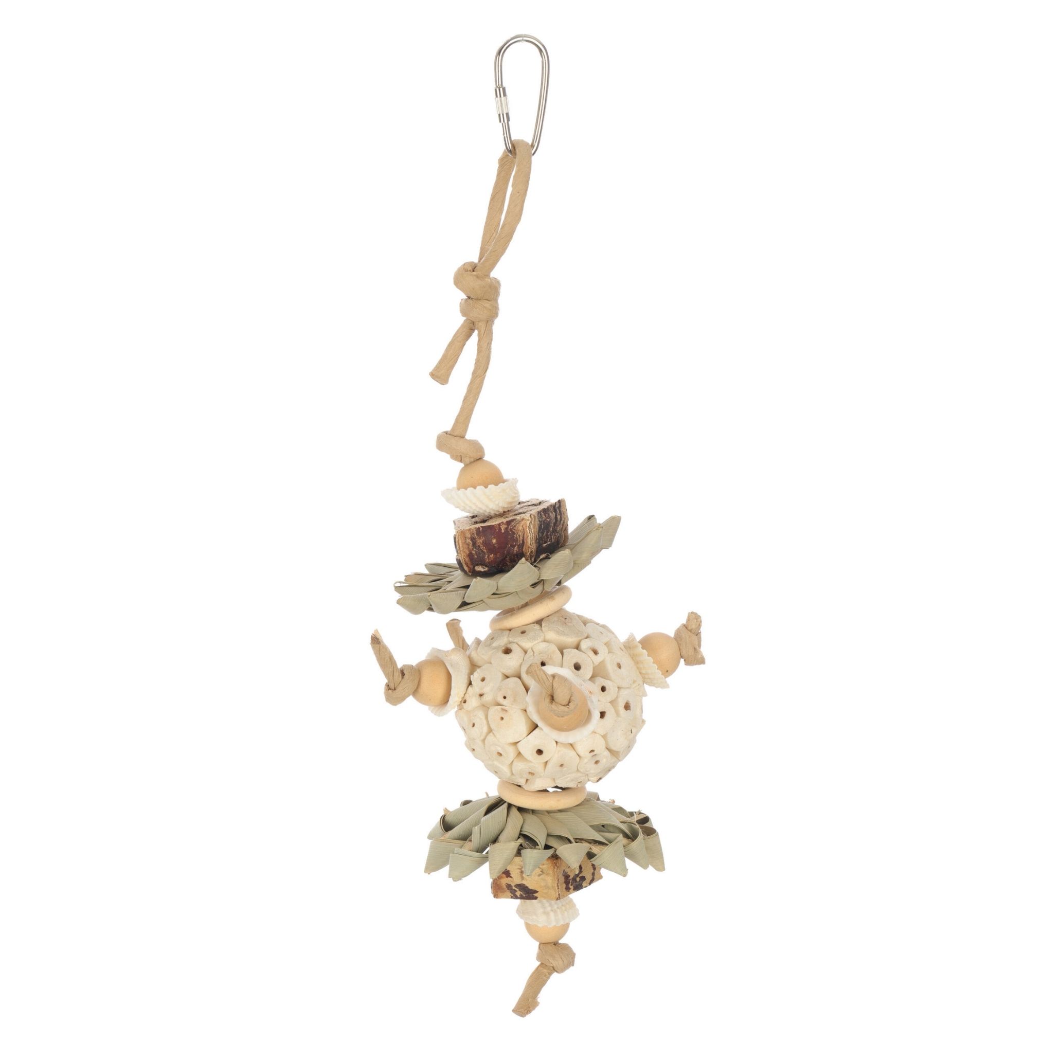 Geef jouw papegaai een uitdagend en verantwoord speeltje met het QUAPAS! papegaaienspeelgoed Nature. Dit speelgoed is volledig gemaakt van natuurlijke materialen zoals papierkoord, dennenhout, sola hout, mahoniepeul en palmblad. Dankzij de variatie in texturen blijft je vogel actief en gestimuleerd.