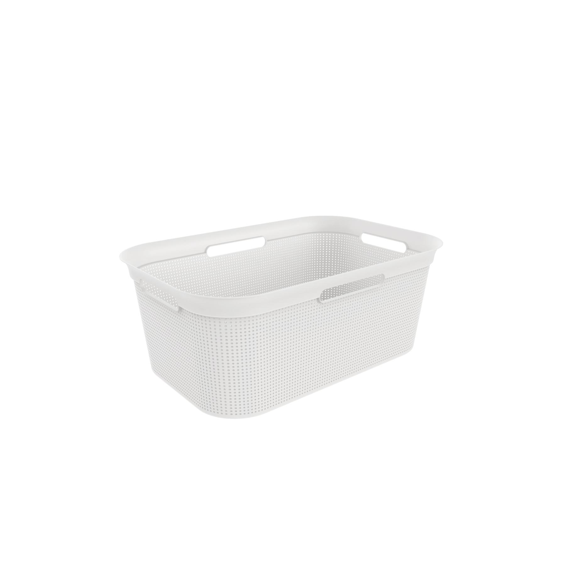 Het ontwerp van de wasmand is niet alleen praktisch, maar ook esthetisch aantrekkelijk met zijn moderne witte kleur. De handvatten zijn ergonomisch geplaatst voor een comfortabelere grip, waardoor het gemakkelijk is om de mand te tillen en te verplaatsen. Dit maakt de wasmand een ideale keuze voor iedereen die stijl en functionaliteit waardeert.
