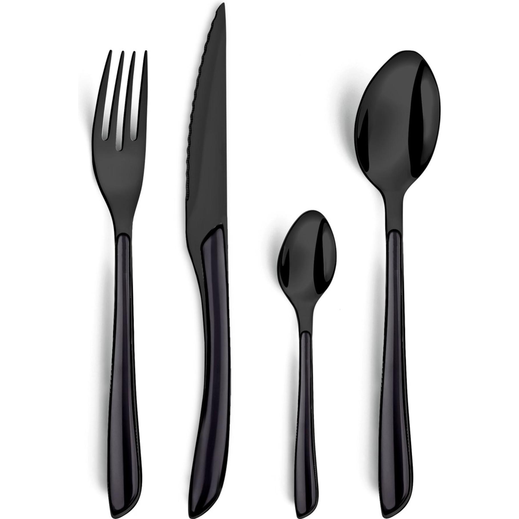 De bestekset bestaat uit een tafelmes, tafelvork, dessertlepel, en dinergerechten, met elke component zorgvuldig vervaardigd uit hoogwaardig, roestvrij staal. De zwarte afwerking zorgt voor een luxueuze uitstraling en draagt bij aan de duurzaamheid van het bestek.