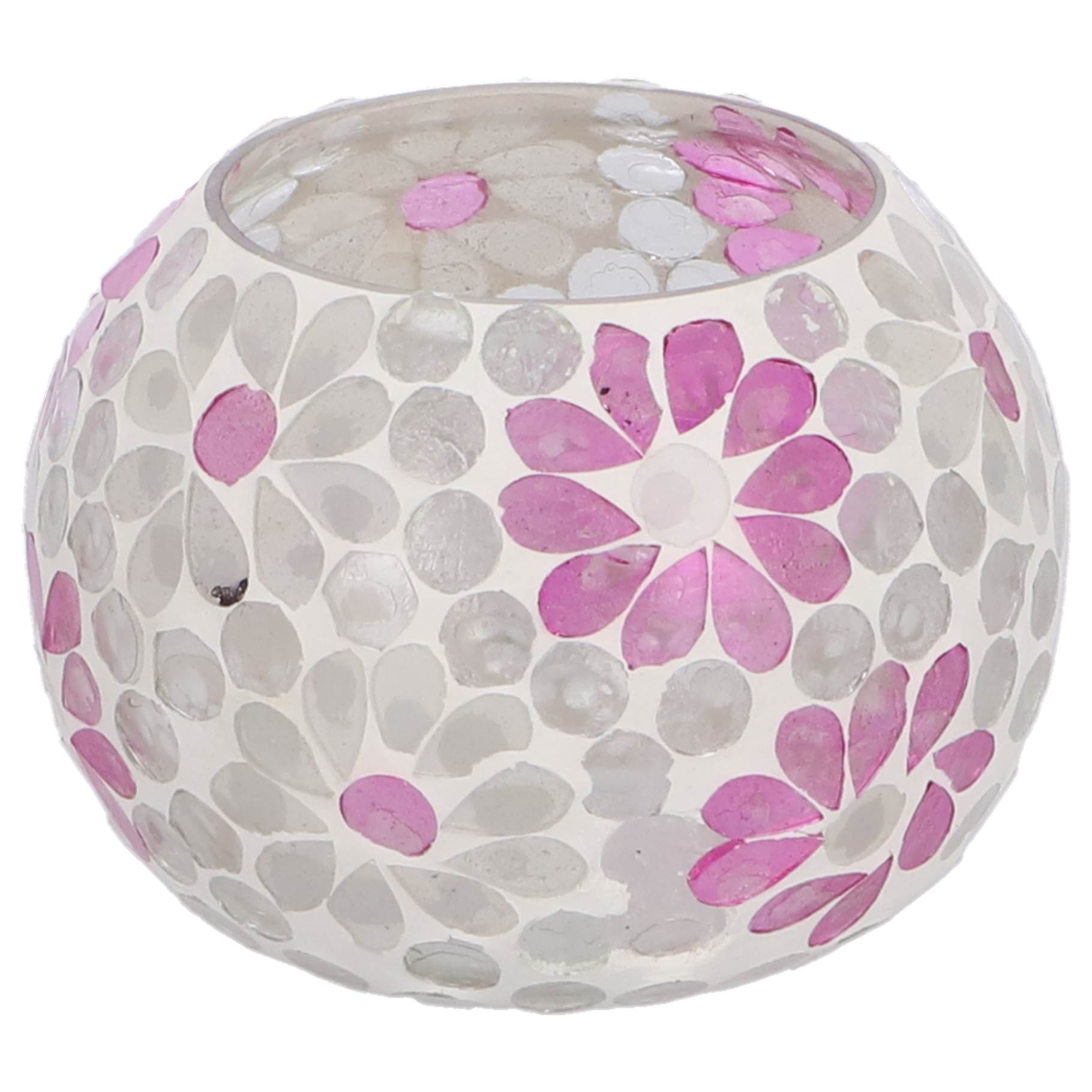 Windlicht Holly L | 10x14x14 cm | Wit/Roze