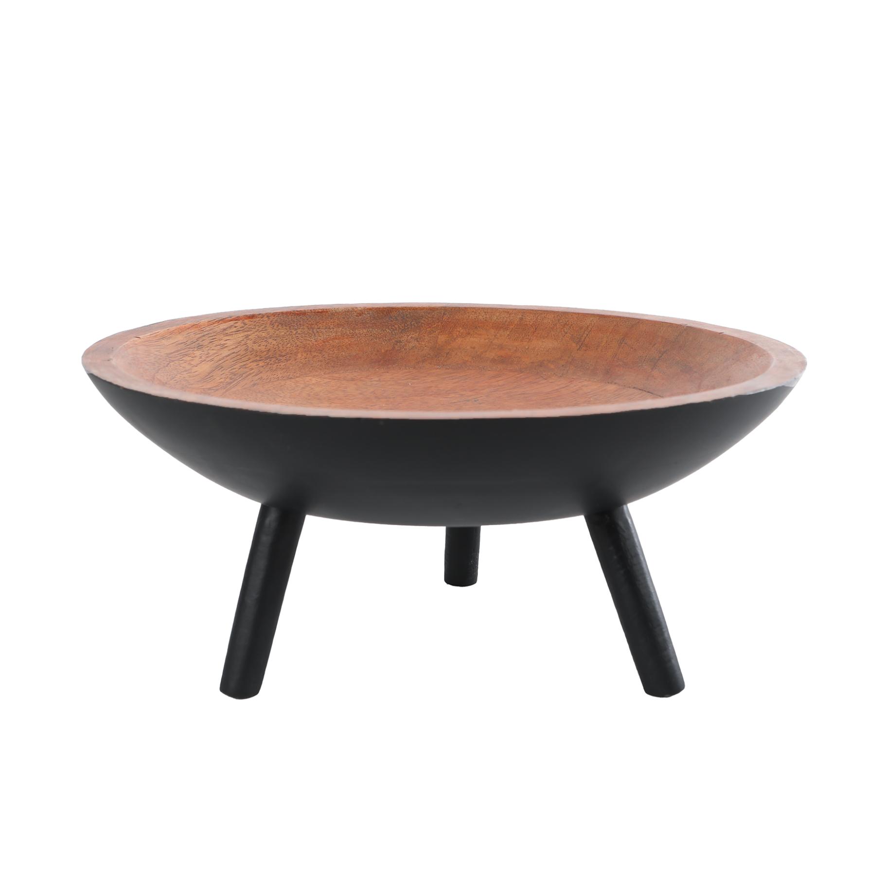 De serveerschaal heeft een verfijnd en eigentijds ontwerp, met een natuurlijke en zwarte afwerking die eenvoudig te integreren is in verschillende interieurstijlen. De pootjes geven niet alleen een mooi visueel effect, maar verhogen ook de schaal, wat handig is bij het serveren.