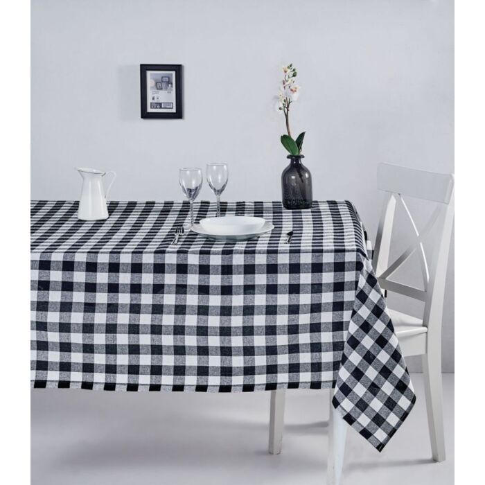 Het klassieke ruitpatroon van ons tafelkleed voegt een vleugje tijdloze elegantie toe aan elke eetsetting, met contrasterende zwarte en witte kleuren die een opvallende visuele aantrekkingskracht creëren. Het past moeiteloos bij elke decoratiestijl, of het nu gaat om een formele setting of een informele gezinsmaaltijd.
