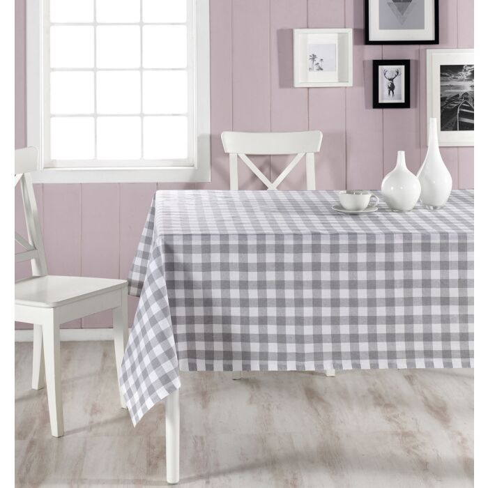 Met zijn elegante geruite patroon en verfijnde grijze tinten, past dit tafelkleed bij een breed scala aan eetstijlen en decoraties. Het ontwerp is niet alleen esthetisch aantrekkelijk, maar ook functioneel, doordat het een stijlvolle bescherming biedt aan je tafel.