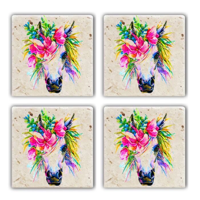 Asir | Onderzetter | 100% natuursteen | 10 x 10 x 1 cm | Veelkleurig (4 stuks)