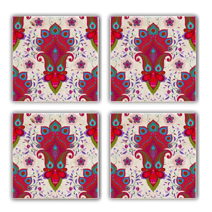 Asir | Onderzetter | 4 Stuks | Veelkleurig | 10 x 10 x 1 cm