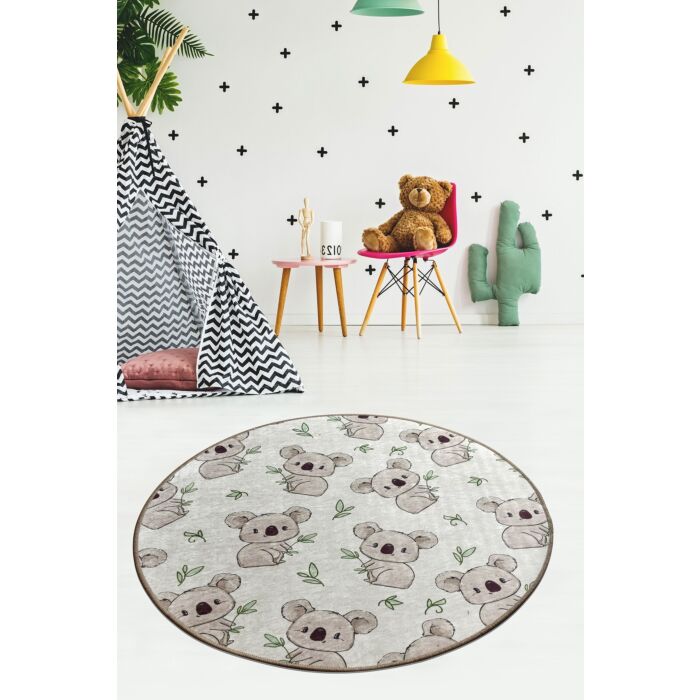 Dit tapijt heeft een diameter van 100 cm en is vervaardigd uit 100% polyester. Met een pluche poolhoogte van 4 mm biedt het een zacht en gedempt oppervlak, terwijl de stevige vilten basis van 2 mm zorgt voor extra duurzaamheid en stabiliteit. De totale dikte van het tapijt bedraagt 10 mm en het weegt 700 gr/m².