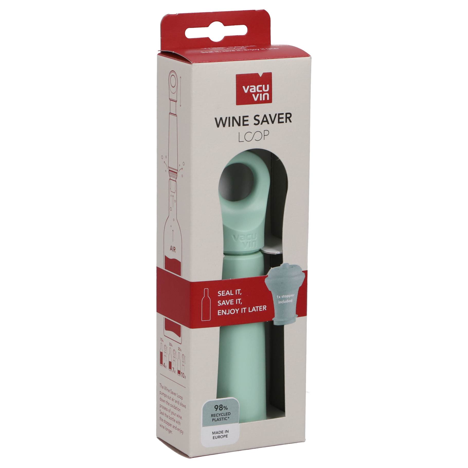 De Vacu Vin wijnstopper in de elegante jade kleur is een essentieel hulpmiddel voor elke wijnliefhebber. Deze wijnstopper is ontworpen om de versheid van uw opened wijnflessen te behouden, waardoor u langer van uw favoriete wijnen kunt genieten.
