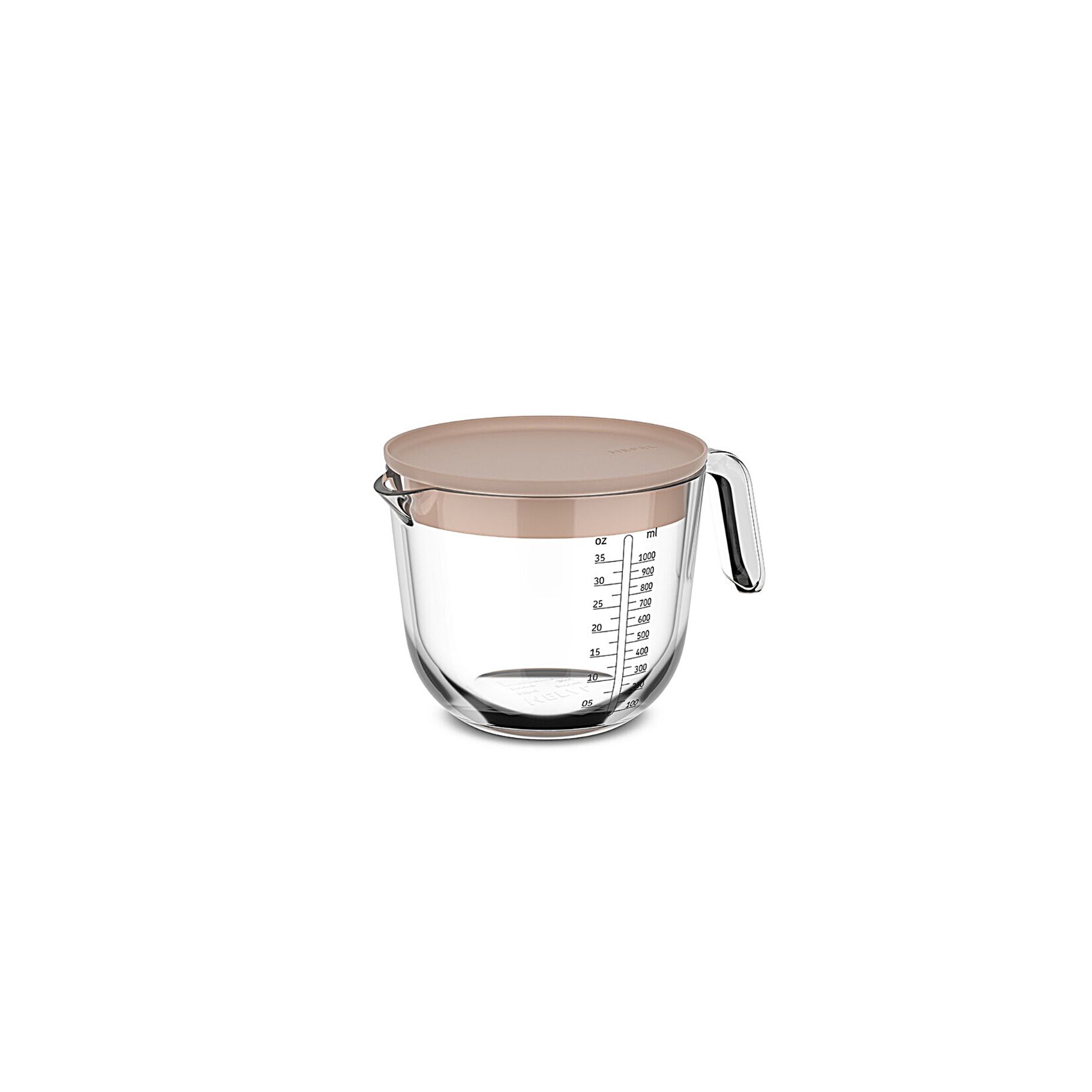 De maatbeker heeft een inhoud van 1 liter en is vervaardigd uit premium transparant glas. Dit maakt het eenvoudig om de inhoud af te lezen, terwijl het duurzame materiaal bestand is tegen dagelijkse slijtage. Het deksel is ook ontworpen om goed op de beker te passen, waardoor je je vloeistoffen veilig kunt decoreren of vervoeren.