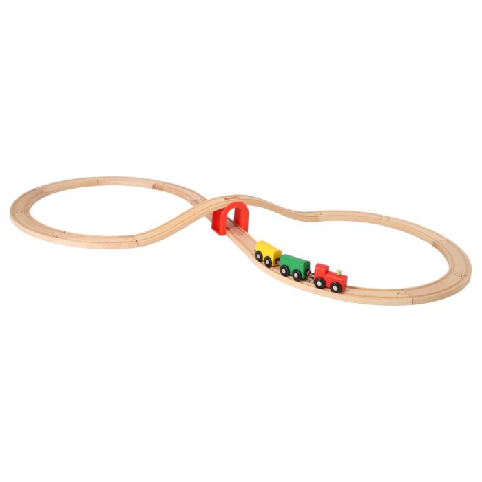 De treinbaan is vervaardigd uit hoogwaardig hout, wat zorgt voor duurzaamheid en veiligheid tijdens het spelen. De onderdelen van de set zijn ontworpen om eenvoudig in elkaar te zetten en af te bouwen, wat het een ideaal product maakt voor kinderen van drie jaar en ouder.